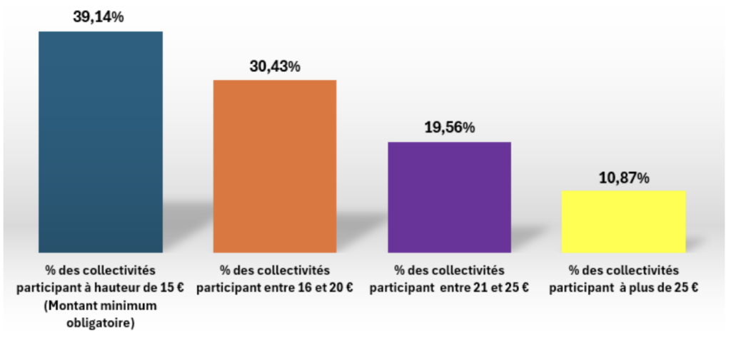 Au regard de notre enquête, la participation de l’employeur s’établit en moyenne à 24€ par mois.