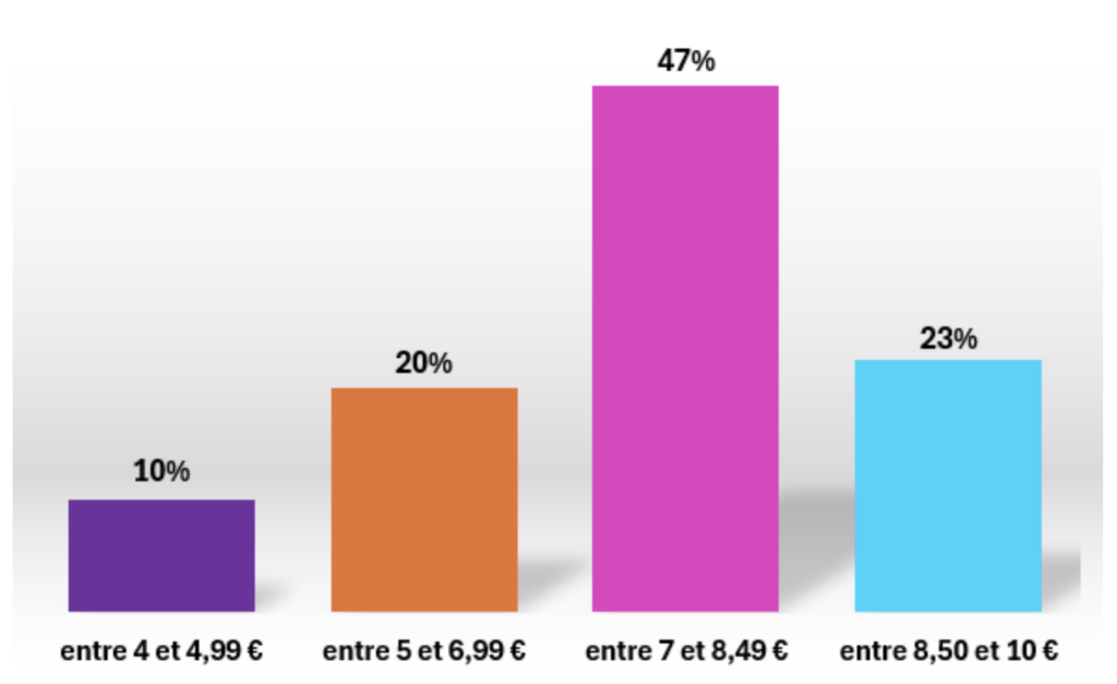 La valeur moyenne d’un ticket, lorsqu’il existe, s’élève à 7,50 euros. Mais comme le montre le tableau suivant, cette valeur peut aller du simple au double suivant l’implantation géographique et ne concerne que les collègues qui ont accès à cet avantage.
