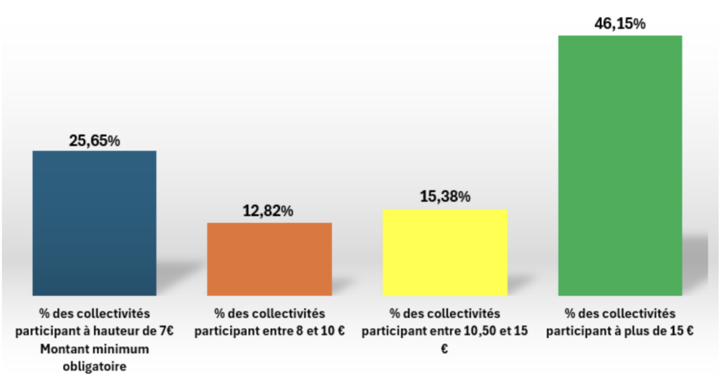 - La participation de l’employeur s’établit en moyenne à 16 € par mois